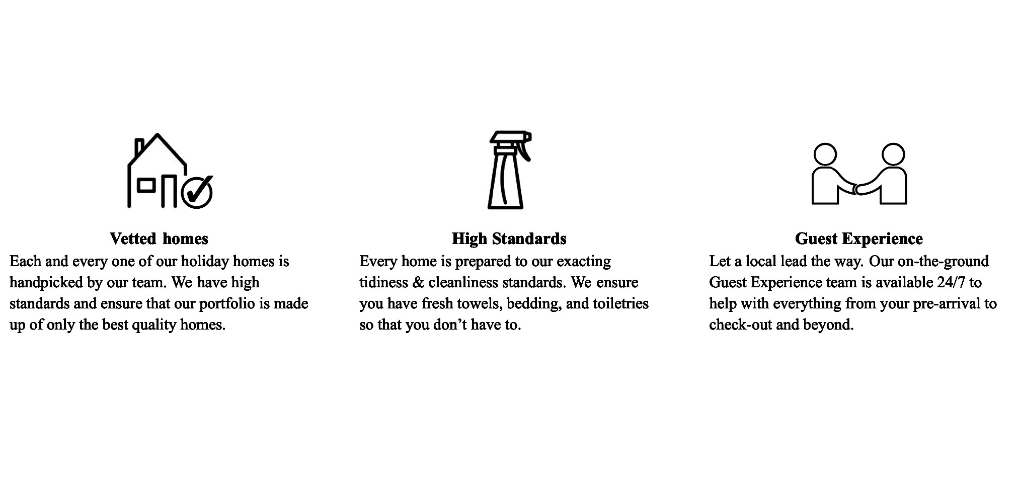 With a high standards check list, each and every one of our holiday homes are personally handpicked by our team and professionally cleaned prior to your check in.