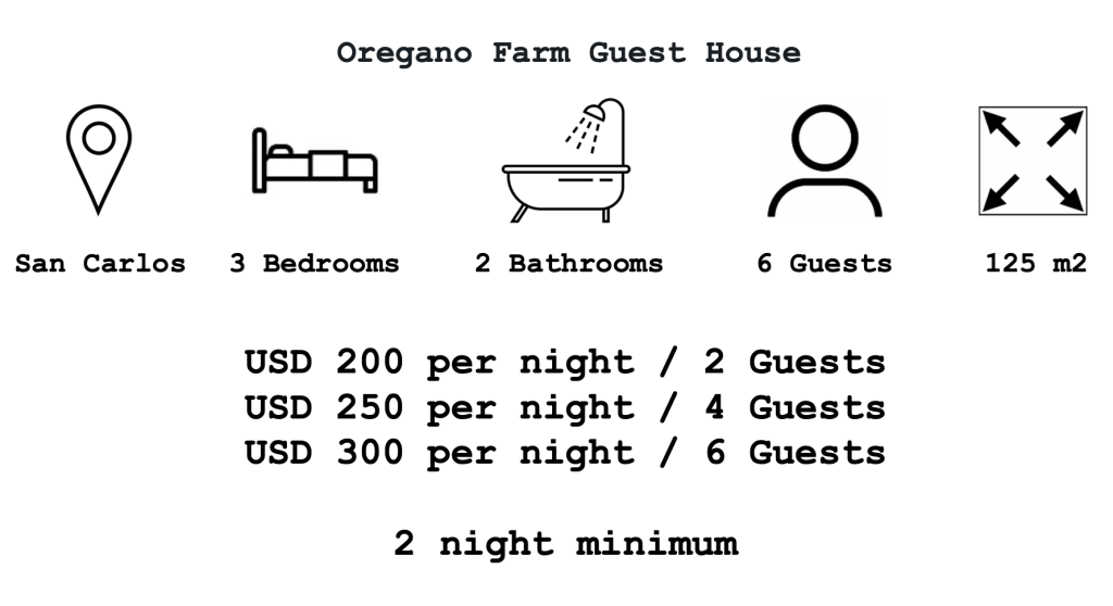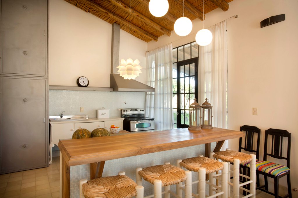 The open space living room and kitchen are bright due to the oversized window doors that lead to the spacious patio, where you’ll find a daybed overlooking the oregano farm and barbecue area. The dining room is fit for high tea with windows overlooking the Andes Mountains, and the kitchen is spacious and awaiting your cooking skills.