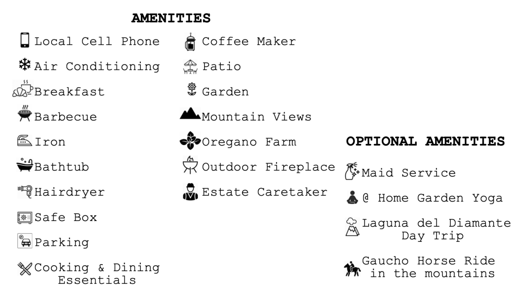 If you’re looking to disconnect and enjoy the country life, this place is it! Oregano is all about the aesthetic details and day trips. A stylish and comfortable country farm house with large open spaces and high ceilings. With its abundance of natural light, this Holiday Home is located on an Oregano Farm and your hosts will enchant you with their day trips to Laguna del Diamante and/or a Gaucho Horse Ride in the mountains.