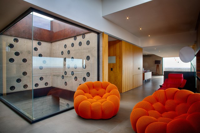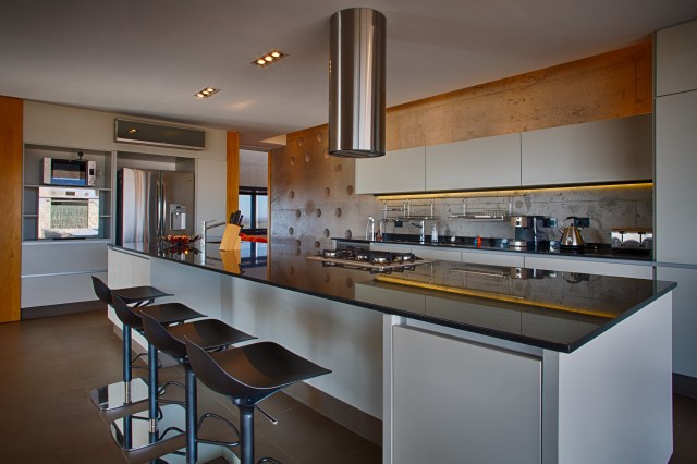 The open kitchen, dining, and living spaces offer a spacious yet comfy atmosphere. And as if sitting by the fireplace on a chilly desert night weren’t enough, you can also enjoy the den, boasting some of the most artistic yet super comfortable furniture pieces you’ll ever lounge in.