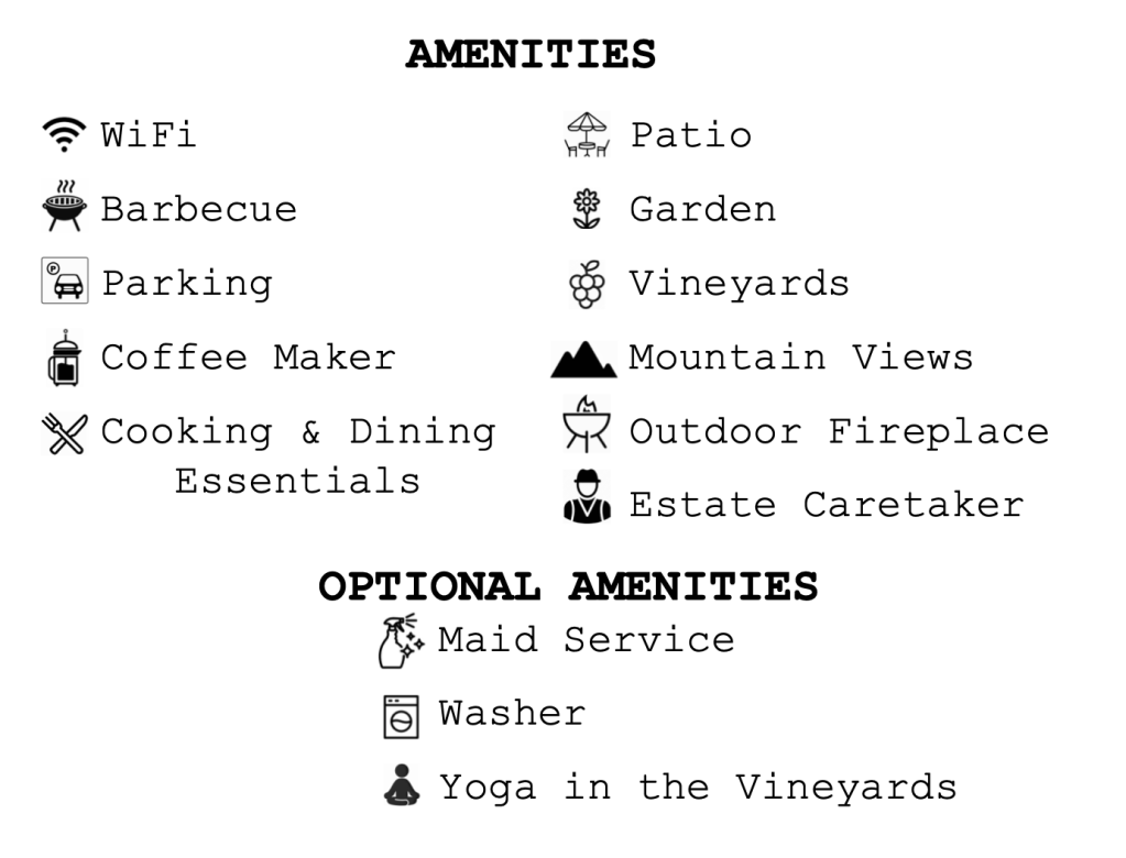 The master bedroom has a king bed, which can be separated into two twin beds, while the living room has two additional twin beds. The kitchenette has everything you’ll need to prepare your Argentine inspired meals, which can be enjoyed with a glass of wine on the very comfortable patio equipped with mountain views and a hammock perfect for that Siesta that awaits you.